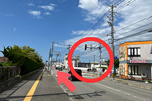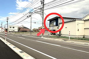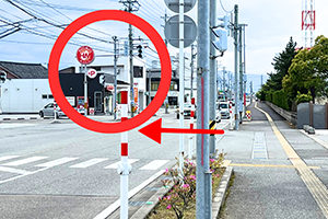 1不二越正門前バス停から、道路の斜め向かい側に横断歩道を渡ってください。